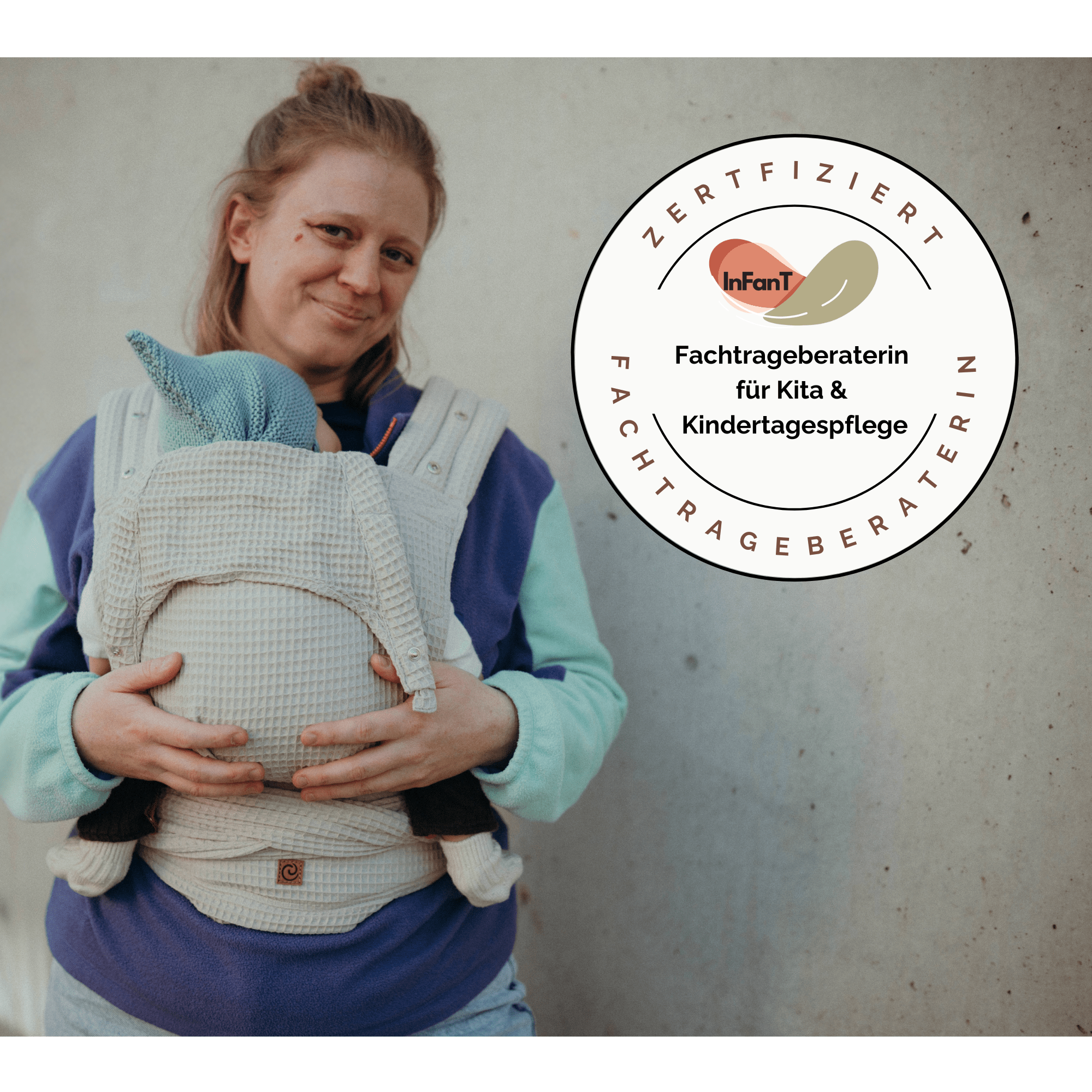 Als zertifizierte Fachtrageberaterin (InFanT) begleite ich pädagogische Fachkräfte bei der Umsetzung des Tragens im Arbeitsalltag.